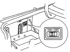 对于ucFl0车型,这一开关位于行李箱的工具储藏室内,如图所示。将开关拨至OFF位置,悬架控制系统中止车辆高度控制。当车辆被举升、停在不平的路面或车辆被拖曳时,这样可避免空气弹簧中压缩空气排出,从而可防止车身高度的下降。