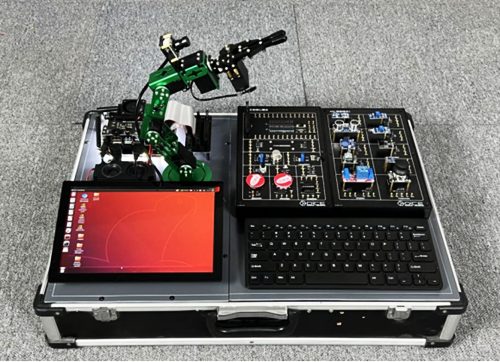 使用Ubuntu操作系统,集成6自由度机械臂、二舵机云台、深度相机、环形阵列麦克风、多种被控对象和传感器等硬件模块,旨在为学生提供从理论学习到实践应用的完整AI教育体验。实验平台支持多种人工智能实验场景,如积木堆叠、垃圾分类、语音交互和视觉导航等,覆盖计算机视觉、机器人控制、自然语言处理和边缘计算等核心领域。