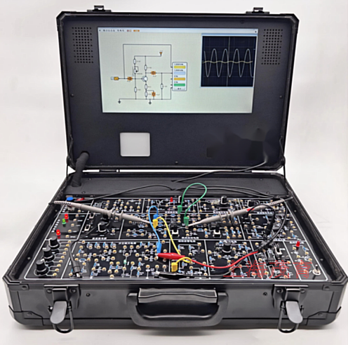 装置内嵌内置数字仪表多合一数字仪表,集成4位半精度万用表、50Msps数字示波器与信号发生器于一体,配备3.5寸触摸屏,彻底取代传统实验箱中分散的低精度测量单元,为学生提供专业级仪器操作体验。