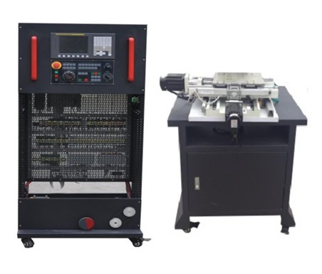 数控机床功能部件单元选择的是具有代表性的两轴精密十字滑台,该部件采用同真实机床完全相同的机械结构,主要是为解决数控机床机械拆装项目的实训难而特别设计的,在传统的数控机床机械拆装实训中,一般采用真实机床来进行机械拆装训练,其教学成本高、损耗大,机床部件重导致拆装难度大、精度恢复不易等实际难题,很难开展全员的拆装与精度检测实训,该十字滑台是提炼了真实机床在拆装过程中的核心技能,即学生主要是拆装传动部件,例如滚珠丝杆、直线导轨、联轴器、伺服电机等,该设备是把这些部件集成到一台十字滑台上进行练习,这样既节约了成本,又训练了核心技能,为了保证精度与刚性,十字滑台模块整体为铝件一次性装夹加工成型,表面经氧化并喷沙工艺处理,工作台采用钢件表面磨削而成,确保长期使用的精度,导轨采用直线导轨,直线导轨安装采用与真实机床安装相同的压块结构进行固定;结构上采用模块化,下装有滑轮,可以自由移动,可以完成机械传动部件中的丝杆、直线导轨、丝杆支架的拆装实训及导轨平行度、直线度、双轴垂直度等精密检测技术的实训,完成机电联调与数控机床机械装配核心技能的训练,完成螺距补偿、反向间隙补偿等实训项目。
