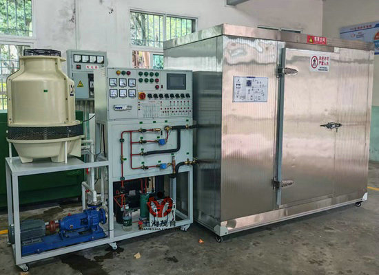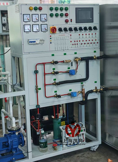 实训装置主要由控制柜、水冷制冷机组、高温拼装式冷库,低温拼装式冷库、主机实训模块、连轴式冷却水泵,冷却塔,温度和压力传感器等组成。