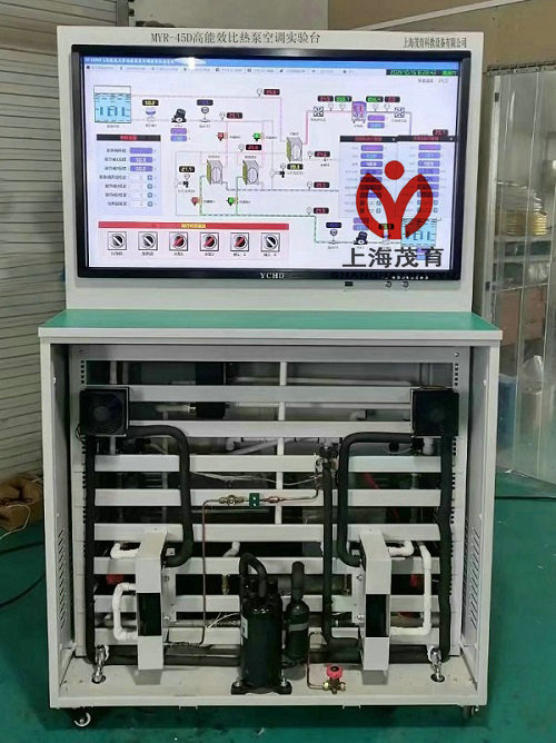 MYR-45D高能效比多功能热泵空调实验系统面向《工程热力学》、《传热学》、《热工基础》及《制冷技术原理》,首次将废热水余热利用引入实验教学中,并将水路进行自循环,大幅度节约实验用水,同时也使实验台摆放不受外接水限制。实验台设计功能丰富,可进行热力学和传热学相关实验,在以往一种换热器基础上,该试验台还可以做不同换热器换热性能的工程热力学实验。在教学测试类实验的基础上还可做相关研究性实验。实验台压缩机可进行变频控制,电子膨胀阀也可以进行调节。