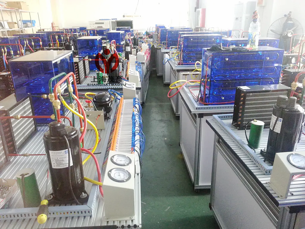 制冷与空调实验室设备,制冷空调实验台,制冷与空调实验装置是根据制冷制热类行业中空调与冰箱维修技术的特点,针对空调和冰箱的电气控制以及制冷系统、电气控制系统、系统调试、故障诊断等特点进行设计。强化了学生对空调冰箱系统管路的安装与维修系统调试等的等的综合职业能力,通过设备进行项目训练,能提高学生的动手操作能力,计划组织能力,制冷系统的调试安装能力,电气控制电路维修能力。