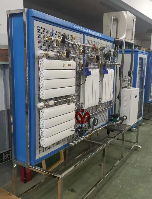 热水供暖循环系统综合实训装置以可编程控制器PLC为控制核心,上位机组态软件作为监控界面,实时显示工作状态与运行参数。系统主要由电热水锅炉、供热管道和散热片三个基本部分组成,并设有膨胀水箱、循环水泵、热量表、自力式压差控制阀、电动流量调节阀、电磁阀、自动排气阀、温度采集模块、压力采集模块、流量采集模块等附属设备,可组成单管顺流式、单管跨跃式、双管上供下回式三种不同的系统形式。适用于高职院校、职业学校空调工程专业、供热通风和建筑专业等相关课程的教学实训设备。