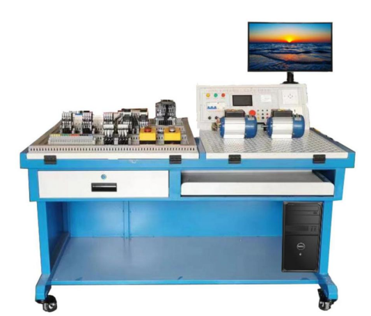 ▲设备由实训屏(内置电源)、实训桌(含键盘)、储物柜三大部分组成。钢制表面经高温喷塑处理,美观大方且有效起到防锈绝缘的作用;电源箱的布局依次为电源保护装置、电源指示装置、电源输出;实训桌左侧安装有角度可以调节的嵌入式的考核平台1张,所有元器件均采用端子引出,学生接线只需在端子上进行接线,可以有效的保护元器件,转接端子采用接插两用端子排,方便与元器件和实训电源屏的连接,右侧装有网孔板一块,角度可调嵌入式安装;实验桌底部装有至少4个导向轮,方便设备移动;储物柜采用标准结构和抽屉式,用于存放工具以及实训资料。电脑通过可调节电脑支架安装于电源屏的上方。