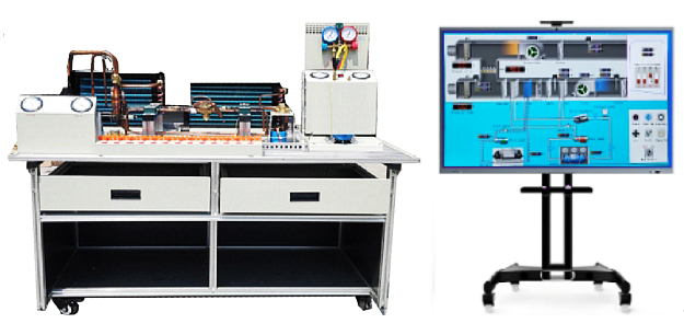 制冷与空调设备运行操作作业安全技术实操考核系统根据《制冷与空调设备运行操作作业安全技术实际操作考试标准研发,制冷类行业中空调与冰箱维修技术的特点,针对空调和冰箱的电气控制以及制冷系统的安装与维修进行设计,强化了学员对空调冰箱系统管路的安装、电气接线、工程调试、故障诊断与维修等综合职业能力。装置融合了液体力学、热力学、传热学和电气控制等技术,适合制冷类相关专业的教学培训和特种作业考核。