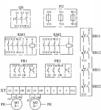 | M1、M2 | 三相鼠笼式异步电动机 |