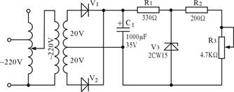 本电路适于输出电流较小,电压稳定性要求不太高的场合。