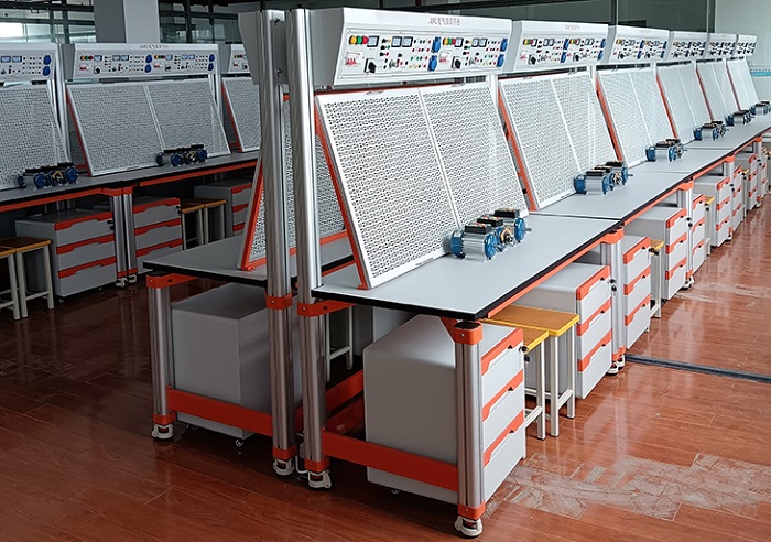 实训目的: 1、电表箱的安装 2、配电箱的安装 3、日光灯的安装 4. 白炽灯的安装 5、吸顶灯的安装 6、节能灯的安装 7、高压钠灯的安装 8、PVC管的处理与布置 9、PVC管的穿线 10、开关与插座的安装 11、分线盒的安装 12、线路分配设计 13、施工规范的学习与训练 14、安全施工要求学习与训练 15、两地控制一盏灯 16、线槽布线施工训练 17、隔离开关的安装 18、配电线路的接线实训 19、金属桥架的组合与安装实训; 20、塑料线槽的敷设实训; 21、金属线管的敷设实训; 22、电气控制箱的安装 23、电气控制电路安装实训 24、三相异步电动机直接起动、停车的控制电路连接; 25. 接触器联锁的三相交流异步电动机正、反转控制电路的连接; 26、按钮联锁的三相交流异步电动机正、反转控制电路的连接; 27、按钮、接触器联锁的三相交流异步电动机正、反转控制电路的连接; 28、三相交流异步电动机Y-△(手动切换)启动控制电路的连接; 29、三相交流异步电动机Y-△(时间继电器切换)启动控制电路的连接; 30、三相交流异步电动机能耗制动控制电路的连接; 31、三相交流异步电动机反接制动控制电路的连接; 32、多台(3台及以下)电动机的顺序控制电路的连接 33、电动机的往返行程控制电路的连接; 34、普通车床控制电路的连接; 35、三相交流异步电动机既能点动,又能连续转动控制电路连接; 36、两地控制电路的连接; 37、按钮切换的双速电动机调速控制电路的连接; 38、时间继电器切换的双速电动机调速控制电路的连接; 39、变频器面板功能参数设置和操作实训; 40、变频器对电机点动控制、启停控制; 41、电机转速多段控制; 42、工频、变频切换控制; 43、基于模拟量控制的电机开环调速; 44、基于面板操作的电机开环调速; 45、变频器的保护和报警功能实训; 46、基于PLC的变频器开环调速; 47、PLC控制电机顺序启动; 48、PLC控制三相异步电动机Y-△启动电路; 49、触摸屏的参数设置; 50、触摸屏的编程; 51、触摸屏、PLC、变频器的综合实训; 52、两相混合式步进电机的控制; 53、交流伺服电机的控制; 54、CA6140车床电路的操作及故障考核实训; 55、Z35钻床电路操作及故障考核实训; 56、X62W万能铣床电路操作及故障考核实训; 57、T68镗床电路操作及故障考核实训; |