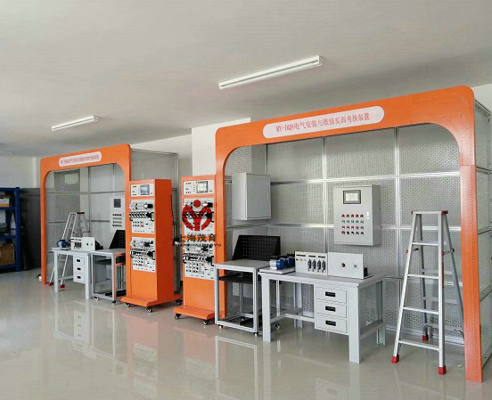 实训项目举例: 1、电表箱的安装 2、配电箱的安装 3、日光灯的安装 4. 白炽灯的安装 5、吸顶灯的安装 6、节能灯的安装 7、高压钠灯的安装 8、PVC管的处理与布置 9、PVC管的穿线 10、开关与插座的安装 11、分线盒的安装 12、线路分配设计 13、施工规范的学习与训练 14、安全施工要求学习与训练 15、两地控制一盏灯 16、线槽布线施工训练 17、隔离开关的安装 18、配电线路的接线实训 19、金属桥架的组合与安装实训; 20、塑料线槽的敷设实训; 21、金属线管的敷设实训; 22、电气控制箱的安装 23、电气控制电路安装实训 24、三相异步电动机直接起动、停车的控制电路连接; 25. 接触器联锁的三相交流异步电动机正、反转控制电路的连接; 26、按钮联锁的三相交流异步电动机正、反转控制电路的连接; 27、按钮、接触器联锁的三相交流异步电动机正、反转控制电路的连接; 28、三相交流异步电动机Y-△(手动切换)启动控制电路的连接; 29、三相交流异步电动机Y-△(时间继电器切换)启动控制电路的连接; 30、三相交流异步电动机能耗制动控制电路的连接; 31、三相交流异步电动机反接制动控制电路的连接; 32、多台(3台及以下)电动机的顺序控制电路的连接 33、电动机的往返行程控制电路的连接; 34、普通车床控制电路的连接; 35、三相交流异步电动机既能点动,又能连续转动控制电路连接; 36、两地控制电路的连接; 37、按钮切换的双速电动机调速控制电路的连接; 38、时间继电器切换的双速电动机调速控制电路的连接; 39、变频器面板功能参数设置和操作实训; 40、变频器对电机点动控制、启停控制; 41、电机转速多段控制; 42、工频、变频切换控制; 43、基于模拟量控制的电机开环调速; 44、基于面板操作的电机开环调速; 45、变频器的保护和报警功能实训; 46、基于PLC的变频器开环调速; 47、PLC控制电机顺序启动; 48、PLC控制三相异步电动机Y-△启动电路; 49、触摸屏的参数设置; 50、触摸屏的编程; 51、触摸屏、PLC、变频器的综合实训; 52、两相混合式步进电机的控制; 53、交流伺服电机的控制; 54、CA6140车床电路的操作及故障考核实训; 55、Z35钻床电路操作及故障考核实训; 56、X62W万能铣床电路操作及故障考核实训; 57、T68镗床电路操作及故障考核实训; |