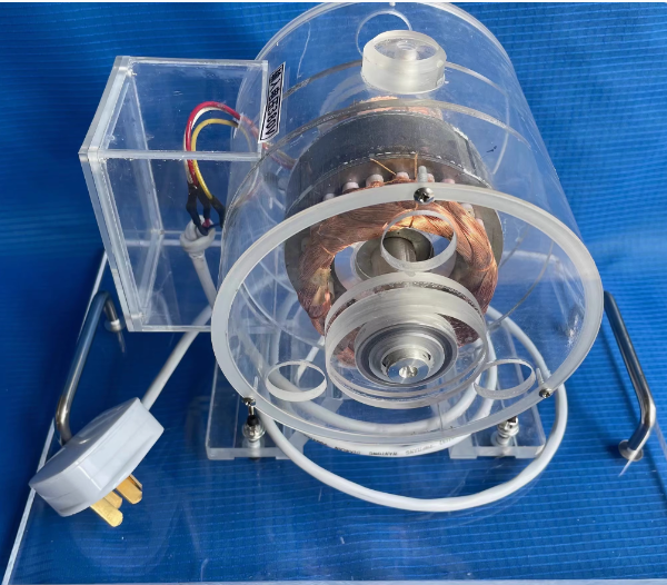 本电机模型外壳为透明有机玻璃制作 电机的外壳绕组定子,转子,转轴,轴承等组成 |