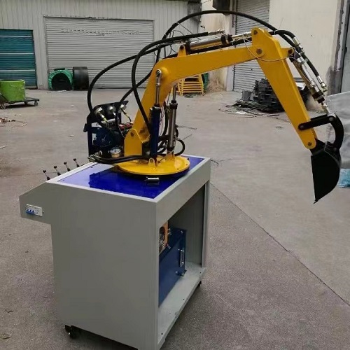 3、挖掘机械按实物比例缩小的全金属结构,实验时启动液压系统根据实验要求模以操作机械进行工作。