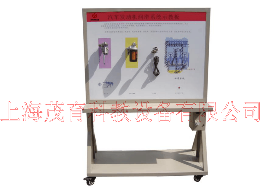 2.面板采用耐创击、耐污染、防火、防潮的高级铝塑板,表面经特殊工艺喷涂底漆处理;面板打印有永不褪色的彩色电路图与工作原理示意图;学员可直观对照发动机润滑系统结构原理图和实物,认识和分析发动机润滑系统的工作原理。