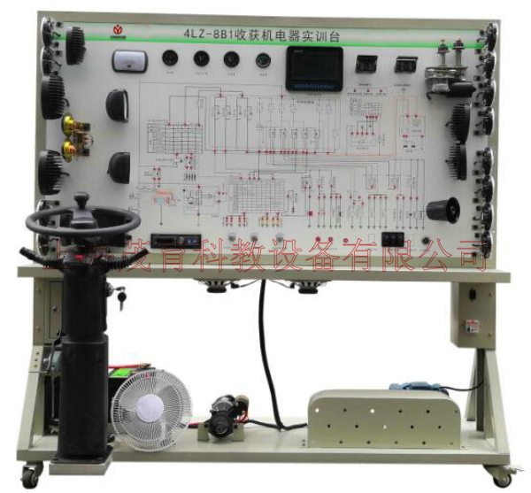 该设备采用 4LZ-8B1收割机整车电器实物为基础,充分展示仪表系统、灯光系统、雨刮系统、喇叭系统、发动机电器系统、起动系统和充电系统等电器各系统的组成结构和工作过程。