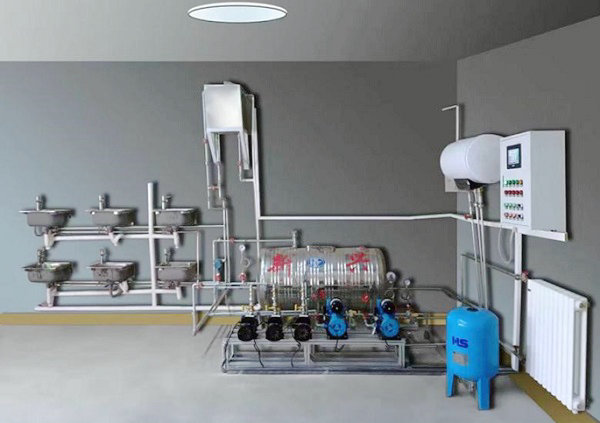1、生活给水系统:主要有给水箱、给水泵、给水管道、压力变送器、脉冲水表、水龙头和淋浴头等组成。管路采用不锈钢管进行设计,可进行不锈钢管的切割、安装和通水试验操作,通过控制系统可实现生活给水系统的变频恒压供水功能,实现单泵变频控制或双泵切换控制等功能;通过脉冲式水表可以完成用水量的计量。