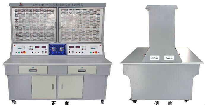 3、实训屏部分:整体采用钢木式结构。优质钢材做骨架,外表面喷涂环氧聚塑。集成配备了各类电源。操作面板文字符号采用现代彩色喷描技术处理,使面板标识清晰且经久耐用。实训屏配置有测量仪表及三相异步电机,可进行相应参数的测量及三相拖动电路的实训。