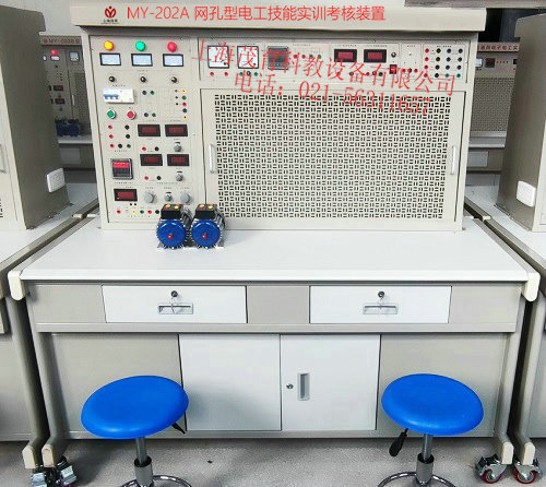 网孔型电工技能及工艺实训考核装置,电工技能实训考核台,电工工艺实训考核设备为配合职业教育和就业人员实际操作、培训、鉴定的需求,设备综合了大中专院校、职业院校、技工学校的《电工技能训练》《电工实训》《电气控制技术》《电力拖动控制线路与技能训练》等相关科目的实验及实训教学内容而研发了本装置。本装置采用网孔板结构,训练与鉴定接近工业现场,外形美观,结构合理,牢固、耐用,实训方式灵活,增加元器件即可增加实训项目,可扩展性强,装置设置多重科学安全保护措施,确保设备和使用者人身安全,非常适合各大中专、职业学院、技工学校和各类培训机构训练学生电工基本技能、专业技能和综合技能,也可进行电工等级考核和技能鉴定。