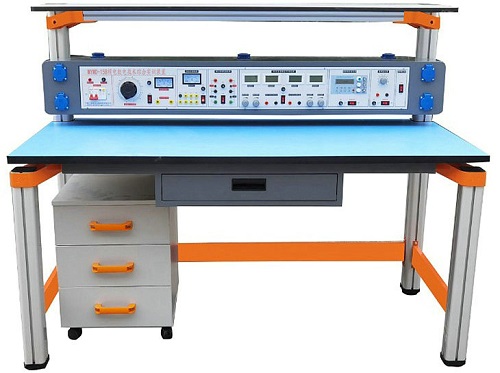 实验桌后面二支截面尺寸70mm×70mm桌脚向上延伸,与一次成型铝压铸框架连接构件构成(非焊接工艺)牢固的支架,与主机箱、仪器架、电源控制箱组成一个完整的实训屏。