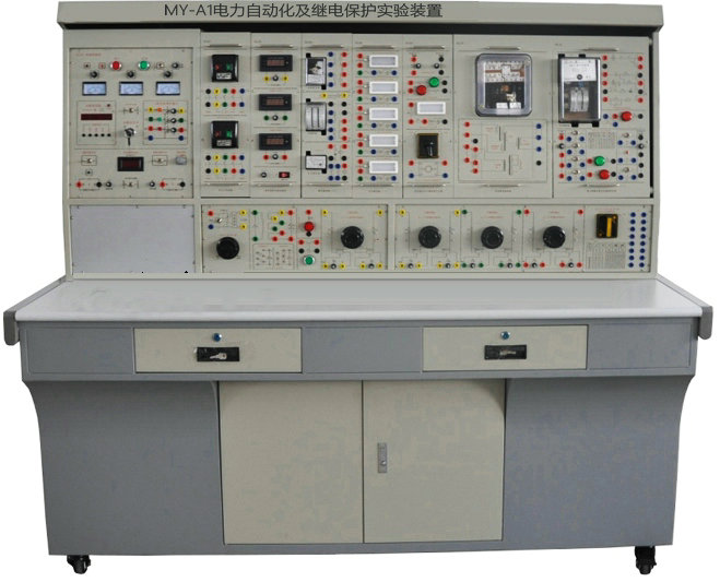本装置是综合了目前高等院校《继电保护》、《电气设备》、《自动装置》、《工厂供电》、《电力系统微机保护》等多门专业课程中的教学内容,结合生产实际应用和发展,设计开发的新颖实验装置。它能对发电厂、变电所及工厂中常用的继电保护、电气二次控制回路及自动装置等教学内容进行操作实验,能以真实直观的实验教学形式对学生进行专业技能训练。