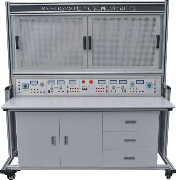 本装置由钢板作制作的多功能安装板(网孔板)实训台和电源装置等组成。实训时选择的各种元件、器件和部件,可方便地安装在网孔板上,方便灵活。根据教学和实训的需要,选择不同的元件、器件和部件,可进行不同课程模块,不同项目的实训,电气装配实训装置适用范围广,可完成的教学内容和实训项目多。使用完毕的元件、器件和部件,从实训台上拆下,集中保管,损坏和丢失。一个实训场所,可以完成几个专业教学和实训,经济适用。实训台配备漏电保护、过载和电路保护,保障人身安全和设备使用安全。灵活、可靠、安全、经济适用,电气装配实训装置的特点。对实训场所不多、教学经费投入受限制的学校,本装置是一种理想的职业教育实训设备。
