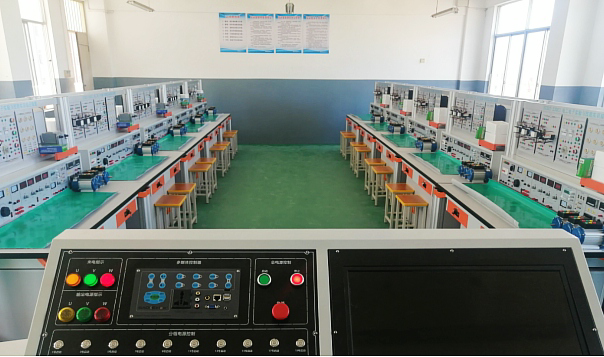 装置由主机箱、实验桌(装有九孔万能插件板)、电气控制实验挂箱,实验挂箱支架、日光灯网孔支架、移动矮柜、示波器架、透明创新实验模块、学生凳等组成。实验装置支架与实验桌可组合、可拆装。支架与桌脚一体,铝合金结构;电气控制实验挂箱及各实验模块可根据实验需求自由组合实验。