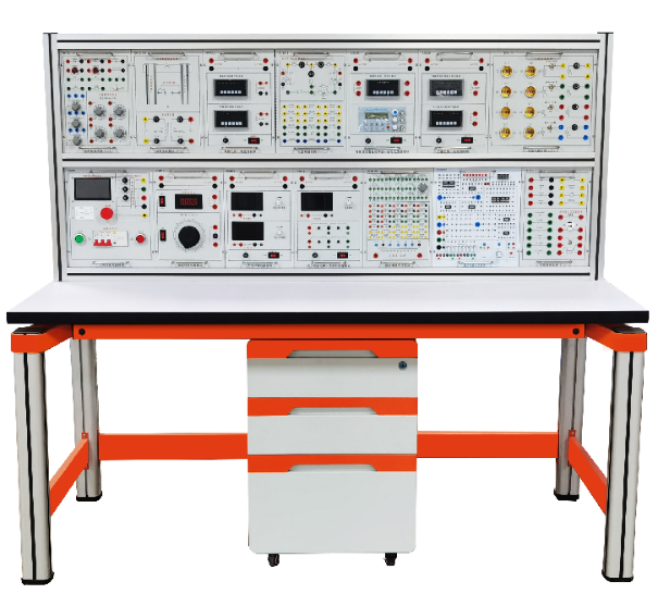 实验平台由实验桌、实验台架、存储柜、实验挂箱组件、配件等组成。具体参数如下: