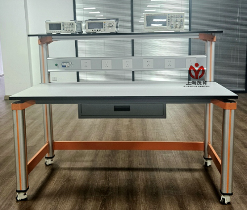 实验桌规格为1600(长)*700(宽)*1400(高),实验桌主体结构全部采用高性能表面氧化的铝型材及一次成型铝压铸框架连接构件,连接构件采用压铸成型工艺(非焊接工艺),经机加工、抛丸、喷砂,表面静电喷涂工艺,安装方便、快捷,用户可自行DIY组装。桌体立柱采用工业铝型材成型工艺,表面氧化处理,截面尺寸:70mm×70mm,四面带槽,槽宽约8mm,端部配套塑料堵头。桌面采用25mmE1级三聚氰胺饰面板,桌面板下设支撑框架,承受力不少于150kg。配备储存柜,存放元件及工具,储存柜底部4只高强度万向可制动PU脚轮,方便移动。实验装置整体简约不简单,高端大气,符合现代化产品审美和发展趋势。