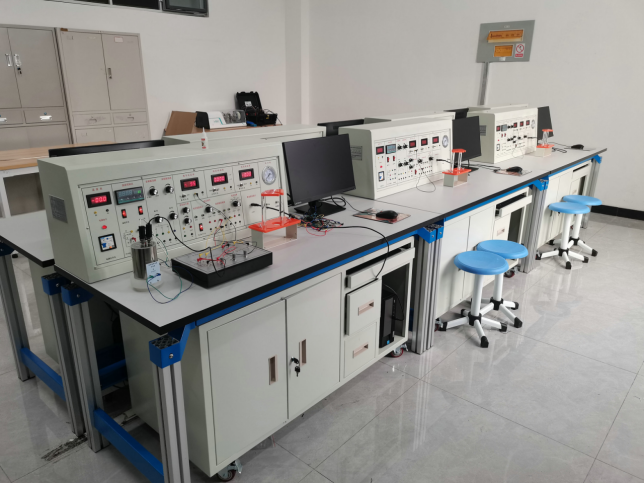 该设备由主控台、传感器、实验模块、位移台架、数据采集卡及处理软件、实验桌六部分组成,实验桌柜存放实验模块,抽屉存放各种传感器。