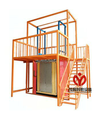 本设备是根据最常见的商用升降式电梯结构制造,采用真实商用电梯部件制成,其结构与实际电梯轿厢构件完全相同,且几乎具备实际电梯轿厢构件的全部功能。事实上可以把它看作是小型化了的电梯轿厢结构组件。由于其几乎所有部件均是采用商用电梯组件材料,因此便于观察、了解整个电梯轿厢结构。电梯轿厢安装调试过程中的每个动作也一目了然,还可以反复实际动手操作。使学生能够更直观、透彻地了解、掌握电梯轿厢的结构及其动作原理,达到事半功倍的效果。因而特别适合于教学。