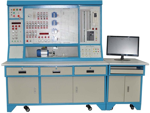 实训屏部分:实训屏分上下两部分,上部分挂箱(模块)空位,以及PLC,公用按键指示灯板,漏电开关;下部分是门机系统模拟控制区和三相电机,操作过程及结果直观移动,并设置了门机减速开关位置调节,并且控制端都以插线端子的形式引出,方便学员实训。
