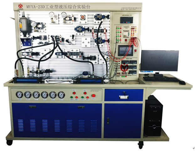 4、安全性能:MYYA-23D工业型液压综合实验台带电气接地、漏电保护(漏地电流超30mA自动断电),缺相保护,直流过载保护。控制电路均为24V直流安全电压,电气导线为安全型高绝缘实验导线。