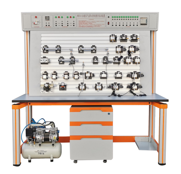 该实验台是根据《液压气动传动技术与实训》、《气动控制技术》等通用教材设计而成,适用于机械类、机电类本科生课程实验和毕业设计(论文)。实训台采用可编程控制器(PLC)和工业气动元件、执行模块为一体,除可进行常规的气动基本控制回路实验外,还可以进行气动-电气控制回路应用实验、气动-PLC控制回路等气动技术课程设计。
