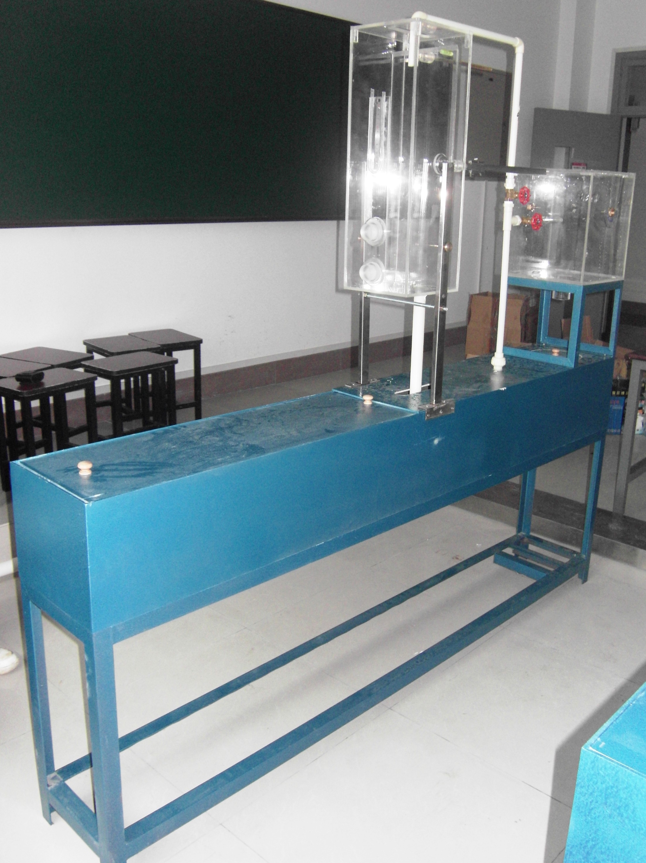 不锈钢移动式实验台、有机玻璃整流稳压水箱、测压传感器、温度传感器DS18B20、实验管道及控制阀门、流量传感器;7寸触摸屏、水箱;防腐潜水泵等。