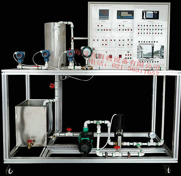 由水泵、压力调解阀、电磁阀、水位传感器、位式调节控制仪、无纸记录仪、上下水箱等组成。