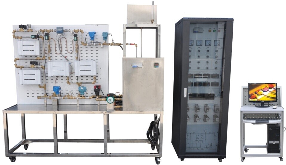 本装置以智能仪表为控制核心,上位机组态软件作为监控界面,实时显示工作状态与运行参数。系统主要由电热水锅炉、供热管道和散热片三个基本部分组成,并设有膨胀水箱、循环水泵、热量表、自力式压差控制阀、电动流量调节阀、电磁阀、自动排气阀、温度采集模块、压力采集模块、流量采集模块等附属设备,可组成单管顺流式、单管跨跃式、双管上供下回式三种不同的系统形式。适用于高职院校、职业学校空调工程专业、供热通风和建筑专业等相关课程的教学实训。