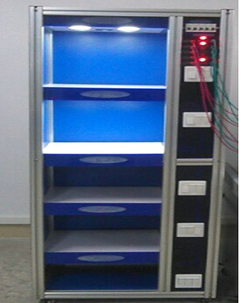 消防排烟及消防卷帘门仿真实训系统,智能楼宇实训设备,消防排烟及消防卷帘门仿真实训装置由模拟房间配备卷帘门系统和排烟风机系统组成,模拟消防防烟系统由风机、风管、自动排烟阀、防火阀、连接控制柜等组成,消防防排烟系统的工作原理是当消防控制中心收到火灾信号时,联动消防防排烟风机控制柜启动风机并打开排烟阀,将室内浓烟从风管中向室外排放,达到排烟效果。模拟卷帘门在火灾发生时起防火分区隔断作用,在火灾发生时,感烟探测器报警,火灾信号送到卷帘门控制柜,控制柜发出启动信号,卷帘门自动降到设定的位置(特殊部位的卷帘门一降到底),如果感温探测器报警,卷帘门才降到底。