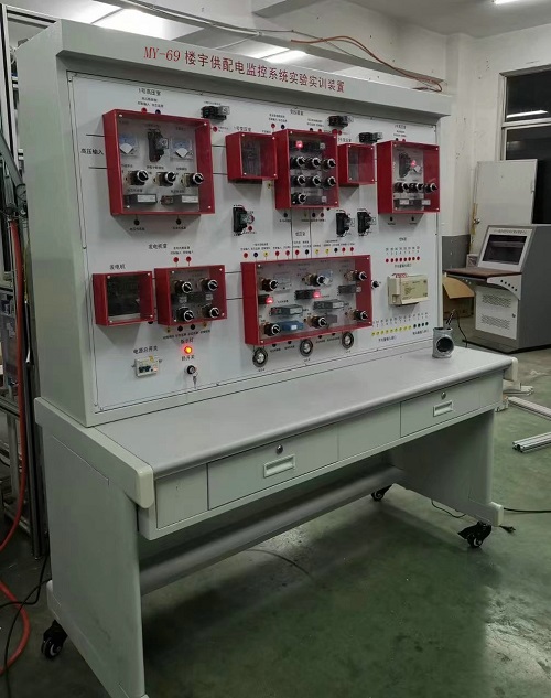 本装置是配合智能建筑供配电监控系统有关课程,进行有关供配电控制部分的教学实训,可以让学生了解楼宇中供配电基本结构,熟悉供配电监控系统,掌握供配电系统在楼宇自动化系统中的应用。控制部分全部采用实物,控制对象采用仿真模型,整个实训装置主要由DDC控制器、低压开关柜、电压变送器、电流变送器、功率变送器、功率因数变送器、仿真模型具、多种低压电器、组态软件、配置软件、控制软件、专用管理电脑等组成。(电脑用户自配)