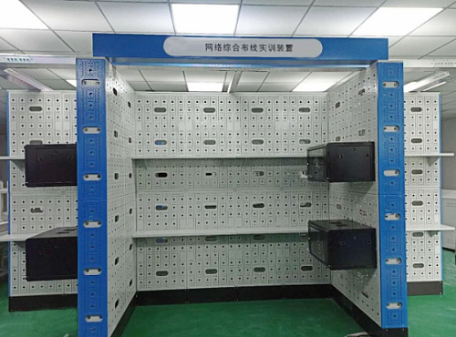 实训规模:每个实训墙面满足4-6名学生同时实训,每两个墙面形成1个模块L型区域,8个模块满足8组学生32-48人同时或者交叉进行综合布线7个子系统工程实训