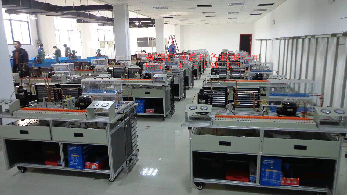 现代制冷与空调系统技能实训设备,现代制冷与空调系统技能实训台,现代制冷与空调系统技能实训装置是专门为大中院校、中职学校制冷类专业而研制的制冷制热实训设备,根据制冷制热类行业中空调与冰箱维修技术的特点,针对空调和冰箱的电气控制以及制冷系统、电气控制系统、系统调试、故障诊断等特点进行设计。强化了学生对空调冰箱系统管路的安装与维修系统调试等的等的综合职业能力。本装置由空调系统模块,冰箱系统模块,电源及仪表模块,空调电气控制模块,冰箱电子温控电气控制模块,冰箱智能温控电气控制模块等组成。通过设备进行项目训练,能提高学生的动手操作能力,计划组织能力,制冷系统的调试安装能力,电气控制电路维修能力等是现代制冷制热技能实训的必要的实验室设备。