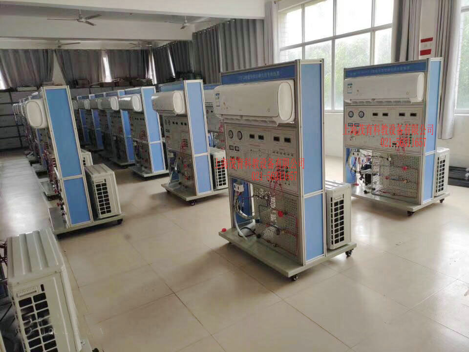 壁挂式空调技能实验装置,壁挂式空调技能实验设备,壁挂式空调技能实验台采用真实空调为实训对象,可使学员能够真正地学到相应的技术技能,通过分析参数,可以了解制冷系统的工作状态,提高学生对制冷系统的分析判断能力,适用于制冷原理及应用、制冷空调技术、制冷空调设备维修与操作”等教学实训要求。该装置集制冷系统、电气控制系统、故障模拟系统为一体,布局合理、造型美观大方。