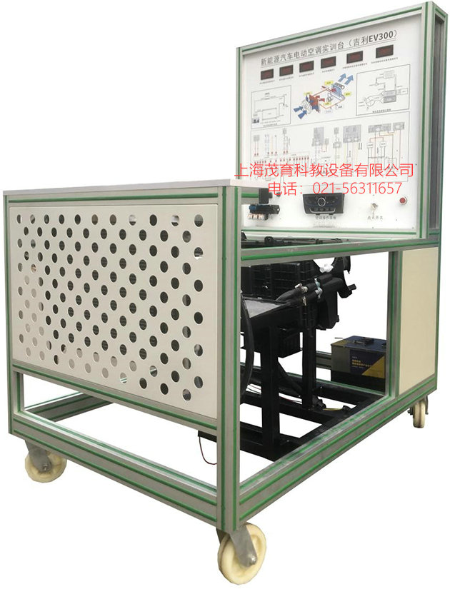 纯电动汽车空调系统实训台,纯电动汽车空调系统实训设备,纯电动汽车空调系统实训装置选用吉利EV纯电动汽车空调和暖风系统真实材料制作的实验实训台架,可完成空调和暖风系统相关的实验实训内容,台架由动力电池和管理系统实训台提供原车高压动力电源。适合于各类院校对纯电动汽车空调和暖风系统理论和维修实训的拆装与维护、结构与原理认知、系统操作、功能动态演示、故障检测与诊断教学需要。