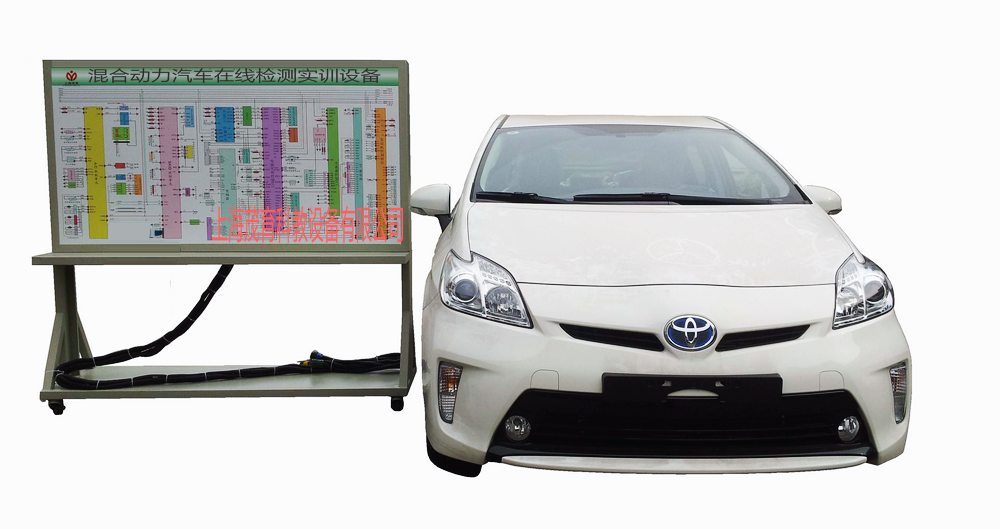混合动力汽车在线检测实训考核系统,新能源汽车实训设备,混合动力汽车在线检测实训考核装置采用油电混合动力汽车在线检测实训设备将一台可正常运行的一汽丰田普锐斯1.8L标准型轿车改装为在线检测教具车,可实时检测与诊断汽车发动机控制单元、混合动力控制单元、电子无级变速器控制单元、智能ECU控制单元、高压电池ECU控制单元、牵引力控制系统(TRC)单元与自动空调控制单元等的动、静态信号参数。