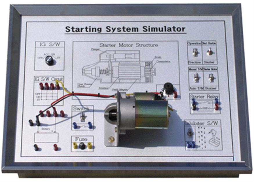 三、摩托车电起动系统实训板,摩托车电起动系统实训台,摩托车电起动系统实训设备结构组成: