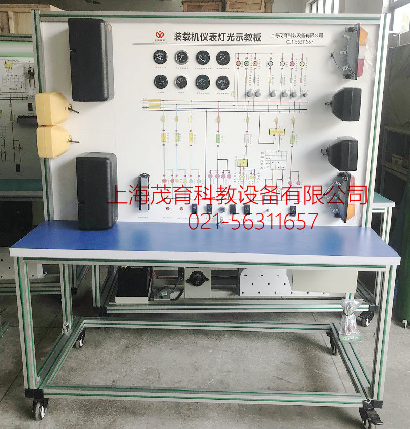 装载机仪表灯光实验台,装载机仪表灯光实验装置,装载机仪表灯光实验设备采用装载机仪表灯光实物为基础,充分展示仪表系统、灯光系统的组成结构和工作过程。