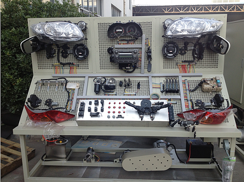 采用灯光系统、仪表系统、点火与喷射系统、起动系统、充电系统、发动机电控系统、、防盗电脑及点火开关、喇叭系统、电动车窗系统、电控门锁及后视镜系统、雨刮系统、音响系统、全套电器的连接线、实训考核台、移动台架等。