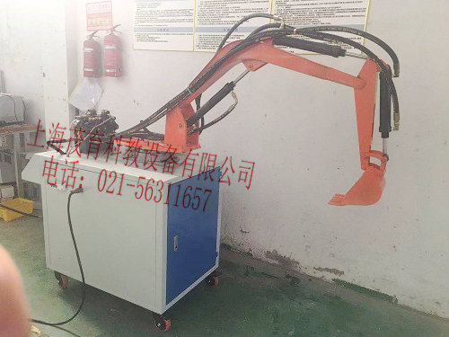 3、挖掘机械按实物比例缩小的全金属结构,实验时启动液压系统根据实验要求模以操作机械进行工作。