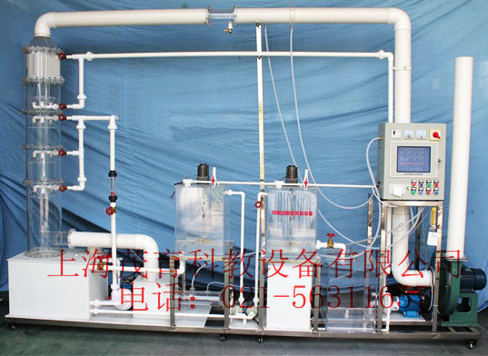 在现有的烟气脱硫工艺中,湿法石灰石/石灰洗涤工艺技术最为成熟,运行最为可靠,应用也最为广泛,其脱硫原理以石灰或石灰石浆液与烟气中的SO2反应生成亚硫酸钙和硫酸钙而进行脱硫的。但其系统较为复杂,且操作条件控制不好时易于出现结垢堵塞等问题。目前的主流脱硫塔均采用了较高的空塔气速和较高的液气比的空塔喷淋的方式进行气液接触吸收,吸收后的浆液通过曝气氧化后生成含结晶水的硫酸钙晶体,通过固液分离后得到石膏。本实验装置主要适用于石灰石浆液教学实验及演示之用,着重于SO2的吸收过程的试验和演示,兼固石灰石吸收液的浓度控制,使有关人员更深刻的理解和掌握石灰石/石灰洗涤工艺的影响因素和操作要点。可调节试验不同空塔气速、液气比和入口SO2浓度下的吸收效率。模型装置配备了带电脑输出接口的自动数据测量、采集及处理系统,便于对实验数据的采集、记录、处理和总结;系统结构设计时除考虑节约占地外还考虑了设备的实验操作和维护的方便性(从防止结垢堵塞和清理的角度)。