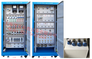 该装置按标准电气控制柜设计制造规格,充分利用双面位置,柜内装有完成各种照明电路所需的单相电度表、日光灯、单联开关、插座、感应开关、漏电开关等,以及电气控制所需要的多种低压电器,如漏电断路器、熔断器、电流互感器、交流接触器、时间继电器、热继电器、中间继电器、行程开关、按钮、信号灯、转换开关、电压表、电流表、功率表及电度表等,为了延长电器使用寿命,各电器的接点都与接线端子相连,再由接线端子与被控制电气连接。